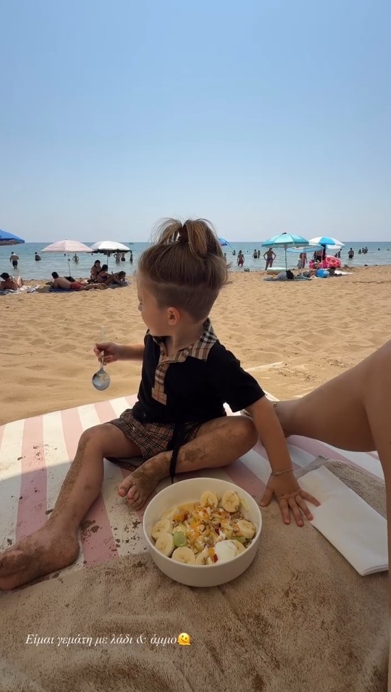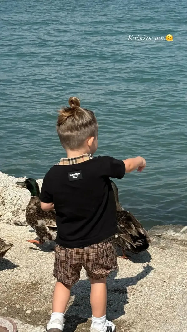 Η Ιωάννα δημοσίευσε στιγμιότυπα με τον μικρό, Πάρη στο σκάφος, στην παραλία να παίζει με τα παιχνίδια του, στο ξενοδοχείο, αλλά και βόλτες στα σοκάκια του νησιού.