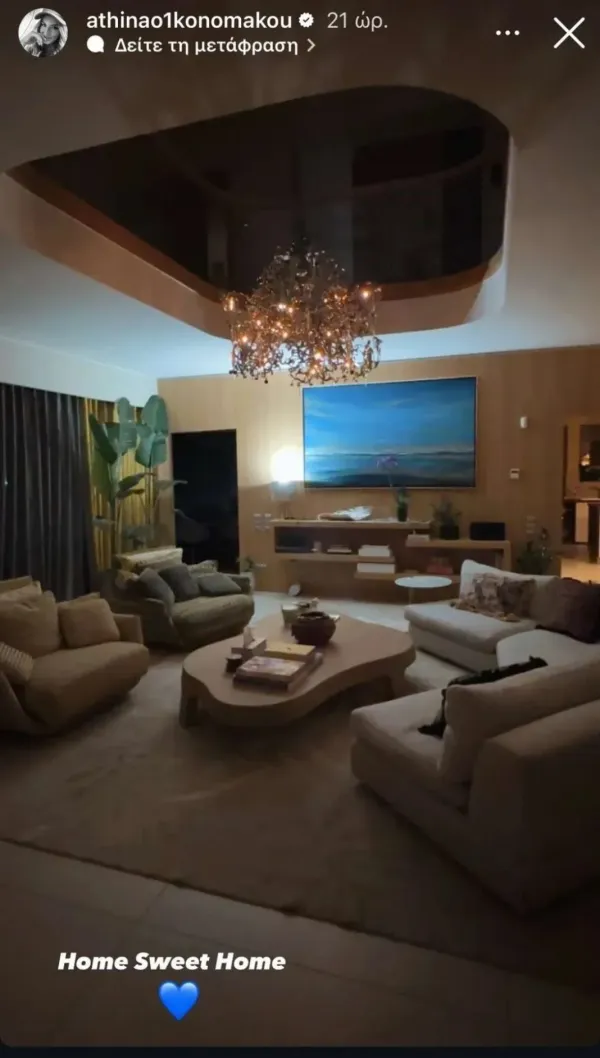 Η Αθηνά Οικονομάκου μας ''άνοιξε'' το σπίτι της στην Κηφισιά και μοιάζει με παλάτι, που συνδυάζει τη μοντέρνα αισθητική με στοιχεία που παραπέμπουν στη δεκαετία των 70s.