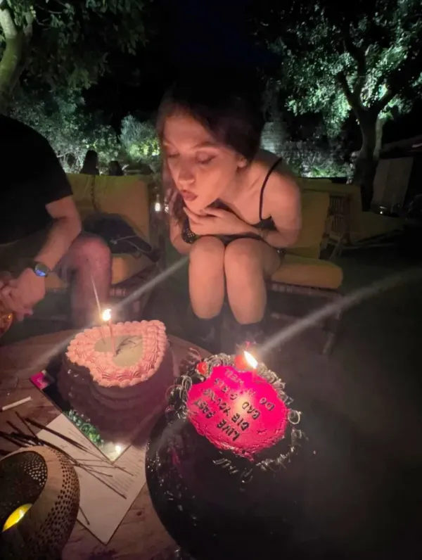 Η νεαρή δεν έσβησε μία αλλά δύο τούρτες η οποία μία εξ’ αυτών έγραφε: «Ζήσε γρήγορα, πέθανε νέα. Τα κακά κορίτσια το κάνουν καλά».