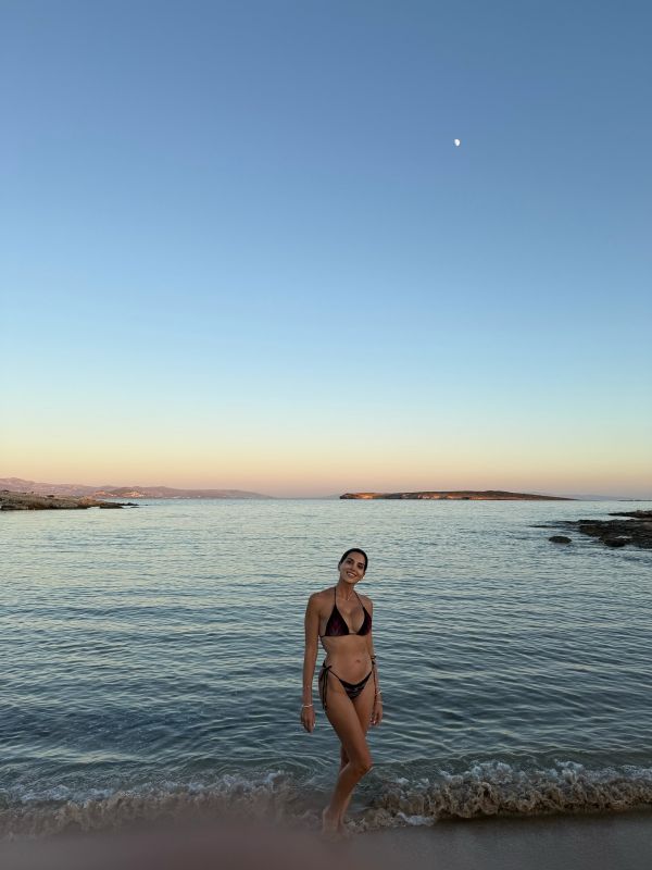 Η παρουσιάστρια απολαμβάνει στιγμές ξεκούρασης και ανεμελιάς στο κυκλαδίτικο νησί, αποδεικνύοντας για ακόμη μία φορά ότι ξέρει πώς να συνδυάζει το στυλ με την απλότητα των διακοπών.