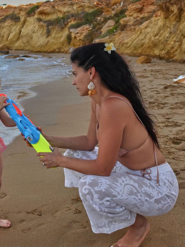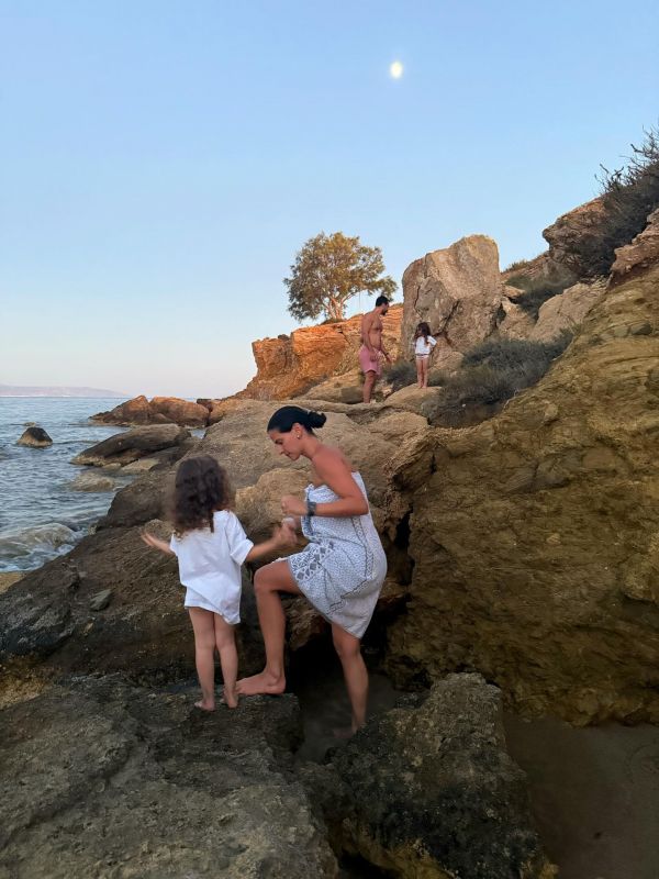 Τα κορίτσια, όλο ενέργεια και χαρά, φαίνεται πως έχουν ξετρελαθεί με τη θάλασσα και το παιχνίδι στην άμμο, γεμίζοντας τις μέρες τους με γέλια και αγκαλιές.