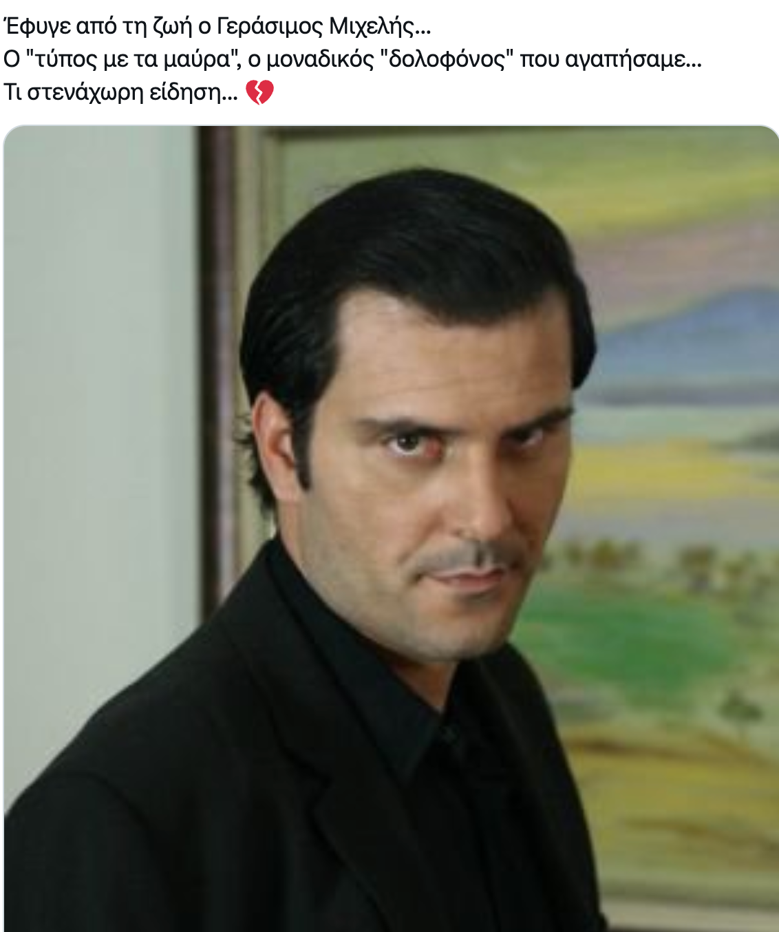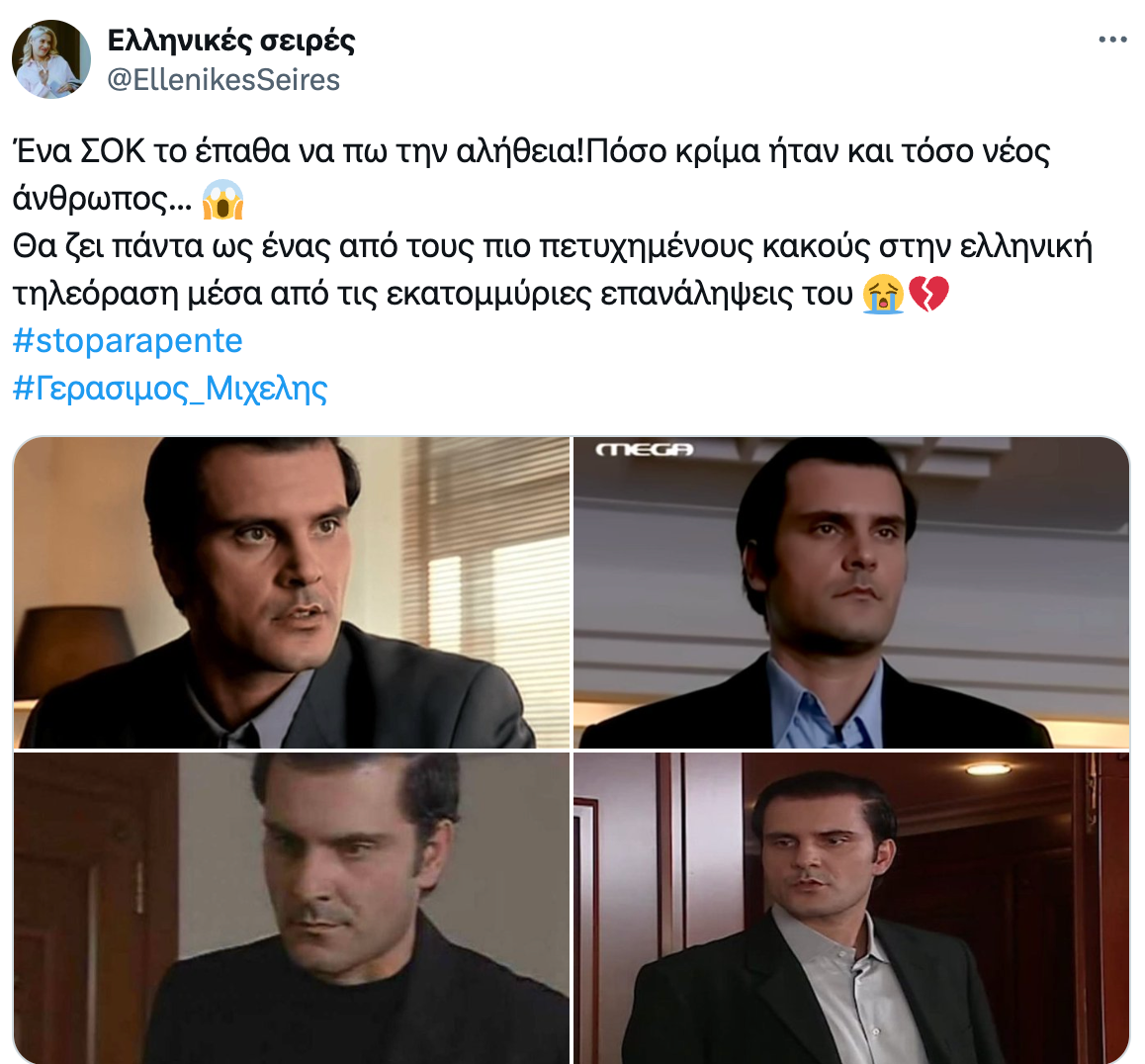 «Ξεκουράσου! Ήσουν από τους καλύτερους κακούς» - Οι τηλεθεατές αποχαιρετούν τον Γεράσιμο Μιχελή
