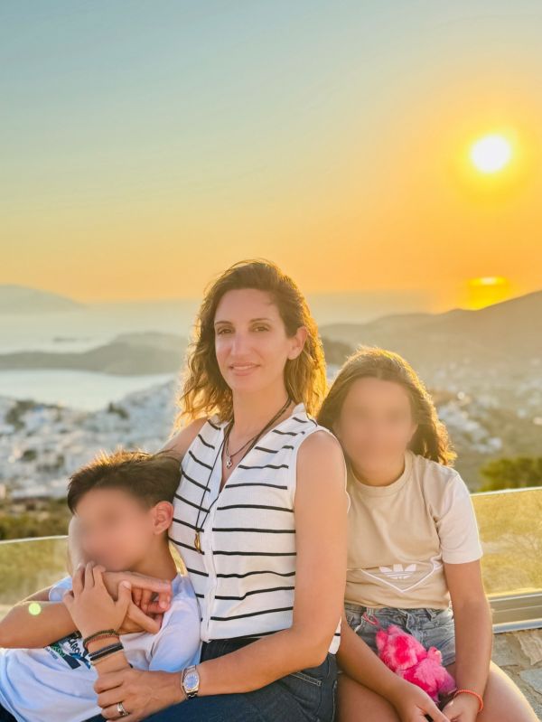Η Μαρία Δήμου με τα παιδιά τους.