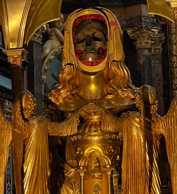 Σημαντικός ιστορικός και θρησκευτικός άνθρωπος και γυναίκα. Εκεί βρίσκεται λοιπόν. Το κρανίο της και το ένα της χέρι. Το άλλο της χέρι βρίσκεται εδώ, σε εμάς, στο Άγιο Όρος. Ένα πράγμα της σιγοψιθύρισα : «Την αποστολή που είχες, την ολοκλήρωσες, τα κατάφερες».