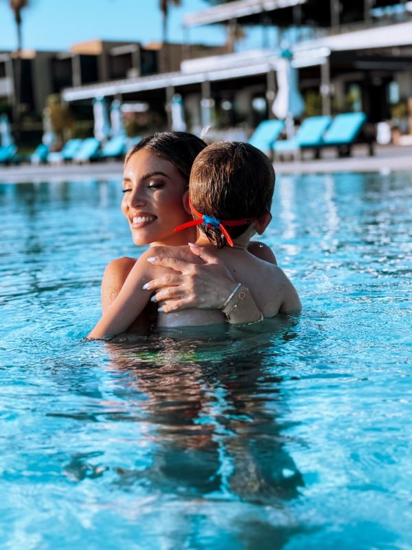 Στη συνέχεια και ενώ τα σχολεία έκλεισαν, τέλη Ιουνίου ταξίδεψε με τα παιδιά της, Μάξιμο και Σιέννα στην Ιταλία και συγκεκριμένα στην Σικελία και πέρασαν μοναδικές στιγμές. Βουτιές και χαλάρωση σε πολυτελές ξενοδοχείο, παιχνίδια με τα παιδιά της αλλά και ρομαντικές βραδιές με τον Μπρούνο.