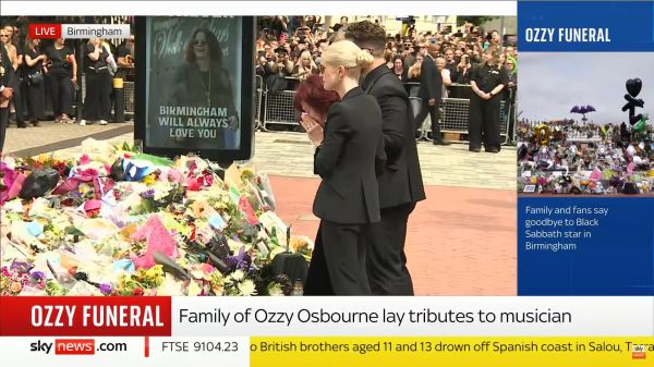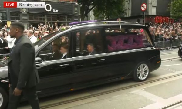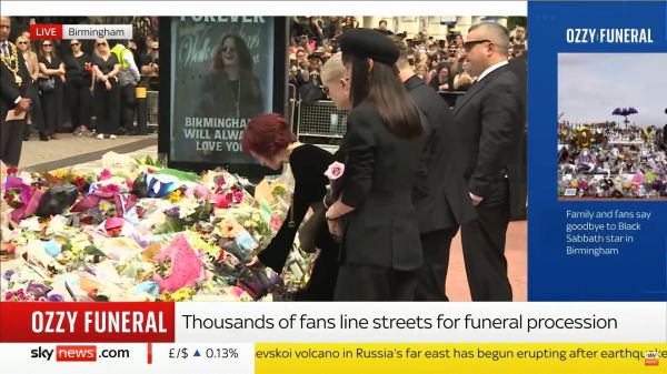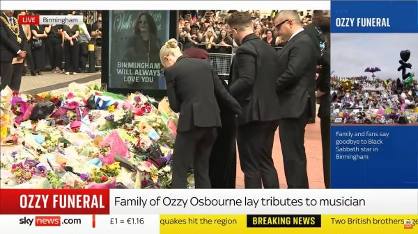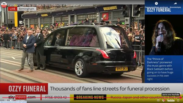 Η σορός του Όζι Όσμπορν μεταφέρεται με αυτοκινητοπομπή που διασχίζει εμβληματικά σημεία του Μπέρμιγχαμ. Η πομπή ξεκίνησε στις 15:00 ώρα Ελλάδας, περνώντας από την Broad Street και τη διάσημη «Γέφυρα των Black Sabbath», όπου βρίσκεται και το περίφημο παγκάκι αφιερωμένο στο συγκρότημα. Εκεί, θαυμαστές αφήνουν λουλούδια και συγκινητικά μηνύματα.