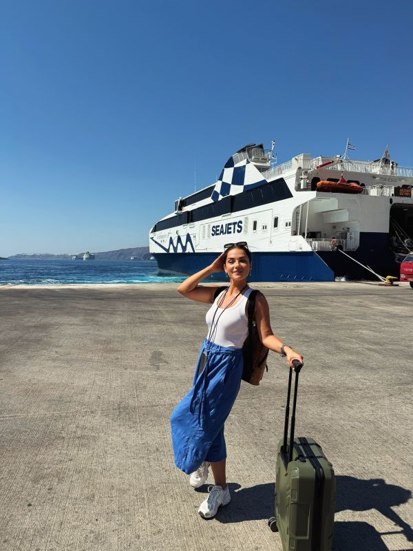 Η ηθοποιός αφού ταξίδεψε στο Ηράκλειο της Κρήτης, εκεί όπου είναι το πατρικό του αγαπημένου της, στη συνέχεια απόλαυσε τις διακοπές της στην Σαντορίνη και είχε την ευκαιρία να κάνει μία μίνι κρουαζιέρα στα κοντινά νησιά, Τήνο και Μύκονο.