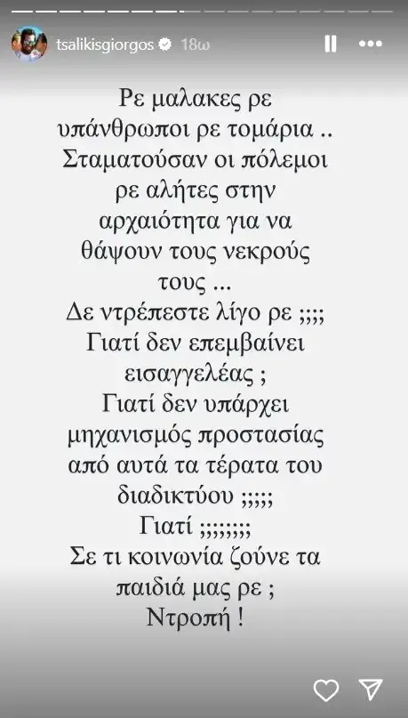 Ξέσπασε ο Γιώργος Τσαλίκης: «Ρε υπάνθρωποι, ρε τομάρια, δεν ντρέπεστε λίγο ρε;»