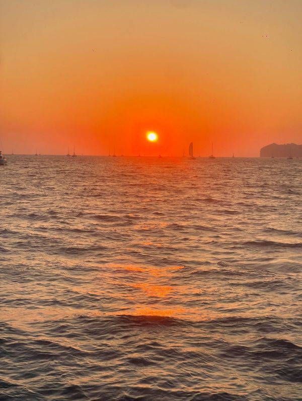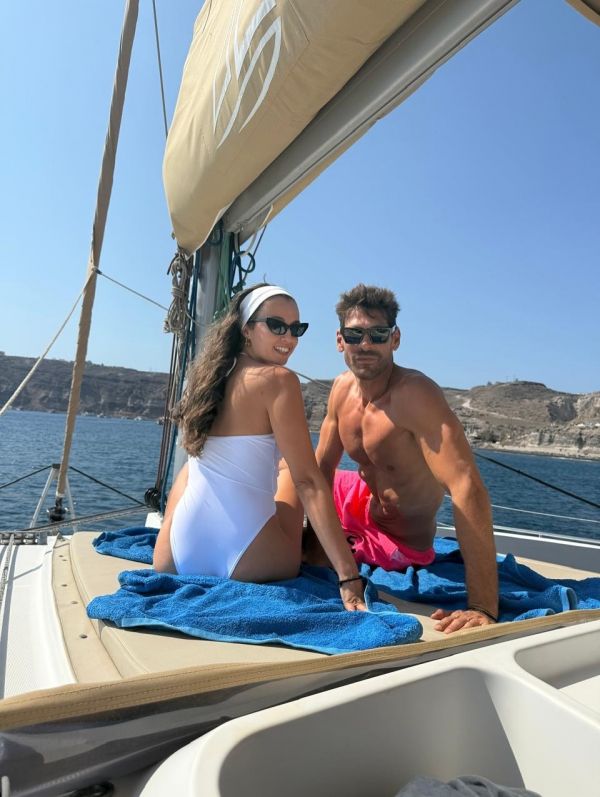 Ο Γιάννης δημοσίευσε στιγμιότυπα από την ρομαντική τους απόδραση και σε ένα εξ αυτών απεικονίζεται το ζευγάρι σε ένα πολυτελές yacht και σχολίασε στη λεζάντα των φωτογραφιών: «Ηλιοβασίλεμα… Σαντορίνη».