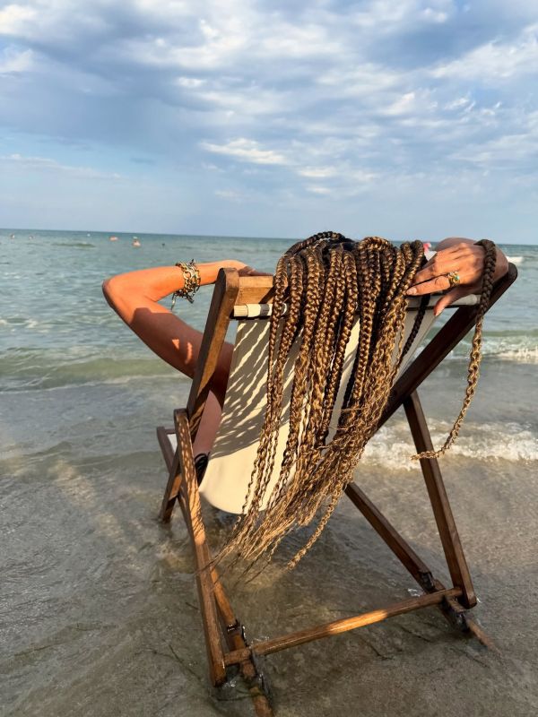 Η ίδια επέλεξε να υιοθετήσει ένα άκρως καλοκαιρινό look κάνοντας τα μαλλιά της πλεξούδες που της πηγαίνουν πολύ.