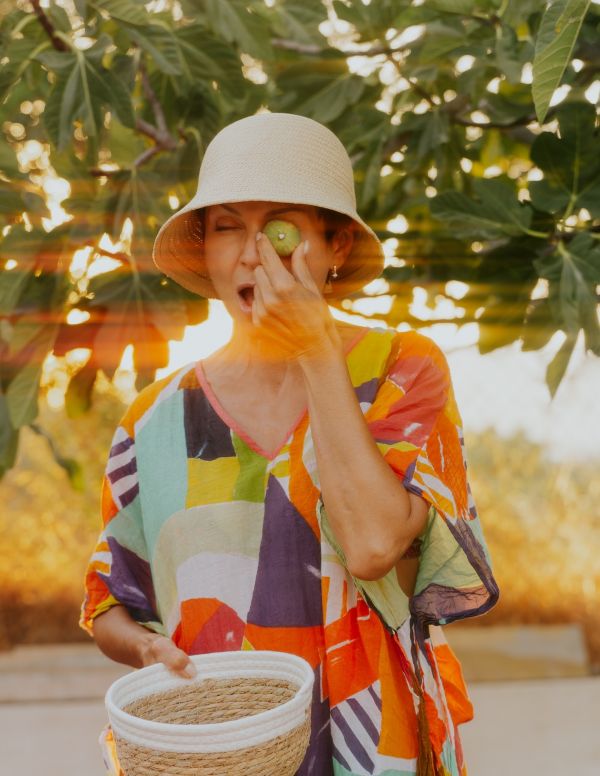 Με χαλαρή διάθεση και φορώντας ένα πολύχρωμο, καλοκαιρινό φόρεμα, η Ταμίλα Κουλίεβα ποζάρει ανάμεσα στα αμπέλια, κρατώντας τσαμπιά σταφυλιών αλλά και ανάμεσα σε λουλούδια και μια γάτα.