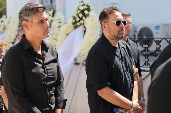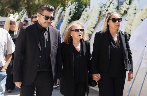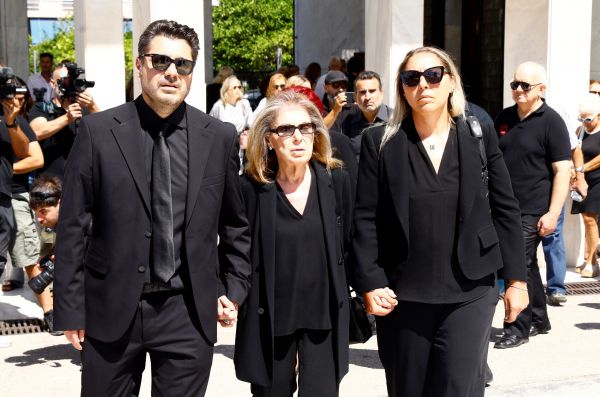 Κηδεία Δημήτρη Κωνσταντάρα: Υποβασταζόμενη η σύζυγός του Βίκυ Βουρλάκη - Τραγικές φιγούρες τα παιδιά