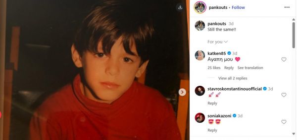 Μία φωτογραφία δημοσίευσε ο Παναγιώτης Κουτσουμπής από την παιδική του ηλικία και από τους πρώτους που σχολίασαν ήταν η μέλλουσα σύζυγός του, Κατερίνα Καινούργιου.