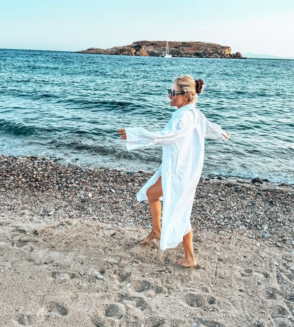 Η παρουσιάστρια ανέβασε στο Instagram της μια σειρά από φωτογραφίες με λευκό μπικίνι από την παραλία, αφήνοντας τους followers της με το απόλυτο αίσθημα καλοκαιρινής νοσταλγίας.