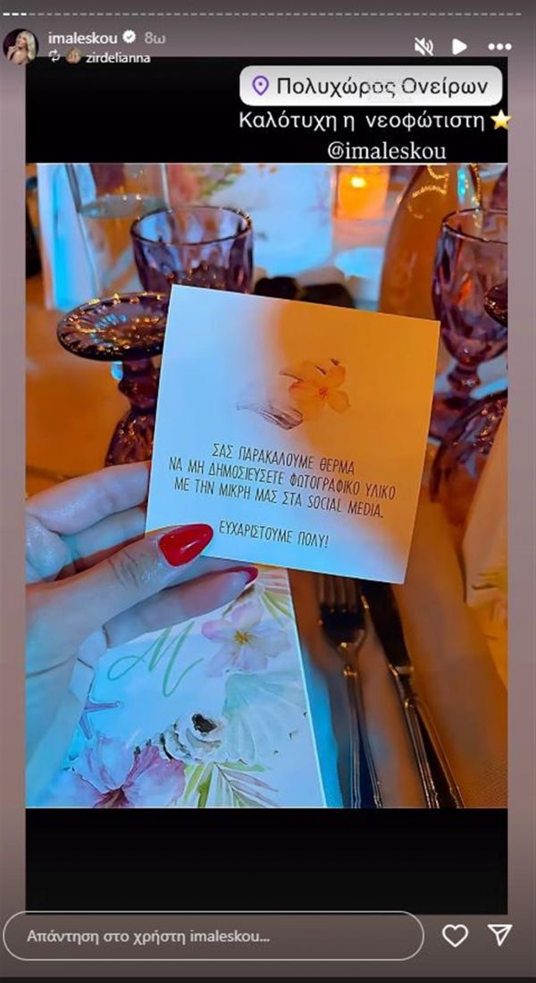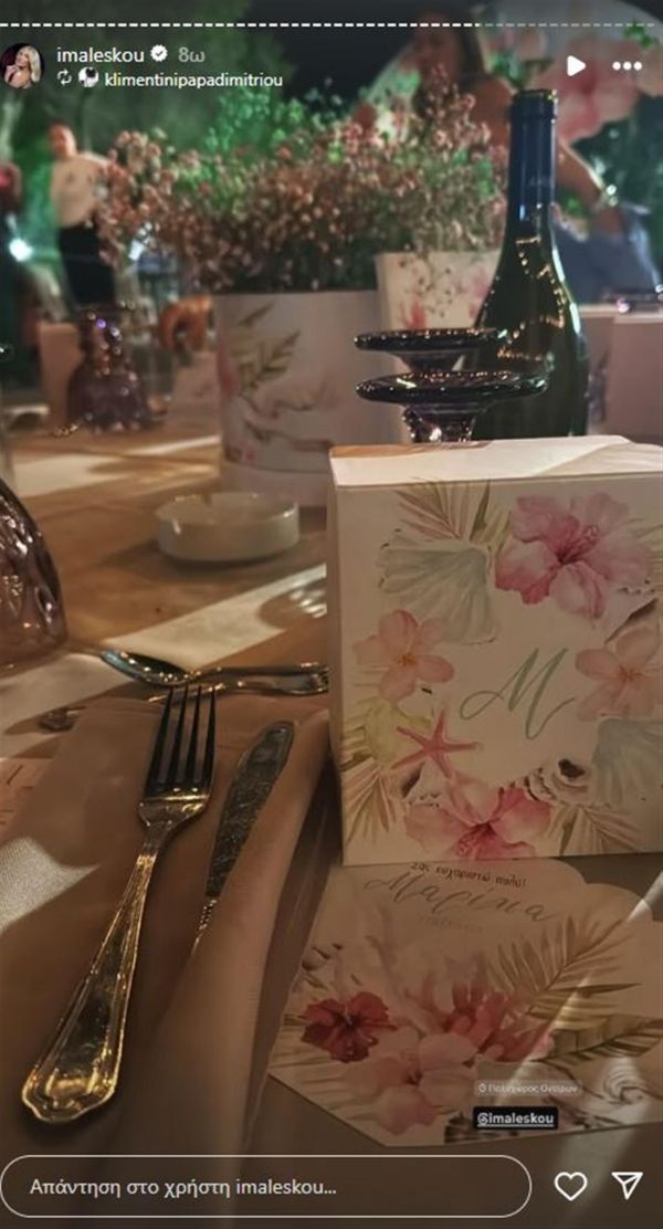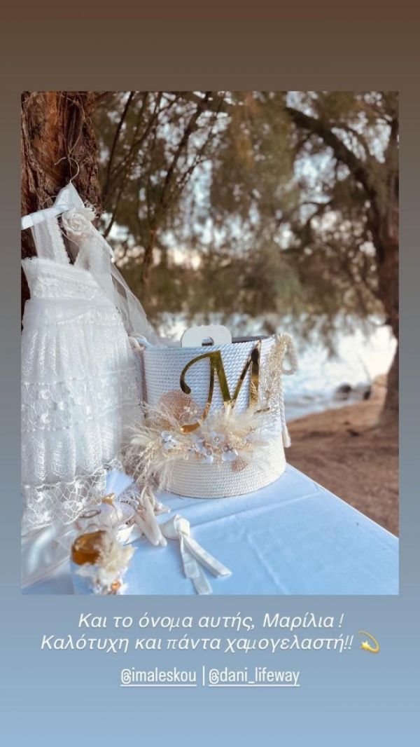 Μάλιστα, οι καλεσμένοι πάνω στο τραπέζι βρήκαν ένα κουτί με το αρχικό γράμμα της μικρής Μαρίλιας και μια κάρτα που έγραφε «Σας ευχαριστώ πολύ», ενώ το ζευγάρι ζήτησε να μην ανέβουν στα social media στιγμιότυπα με την κόρη του.