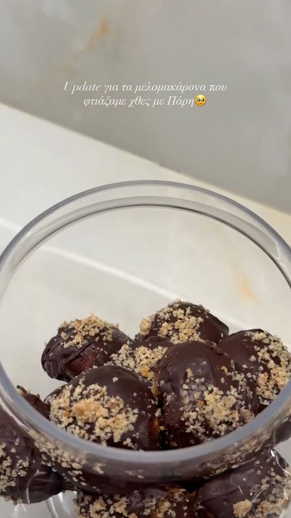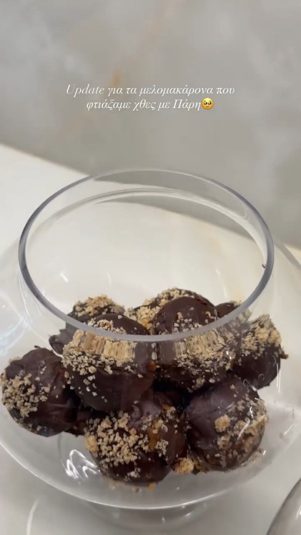 Η γνωστή influencer μοιράστηκε στα Instagram stories της βίντεο από τη διαδικασία, δείχνοντας βήμα–βήμα πώς ετοίμασε τα σπιτικά της μελομακάρονα. Όπως αποκάλυψε, η συνταγή «πέτυχε» και μάλιστα έφτιαξε δύο εκδοχές, την κλασική, με καρύδι και άφθονο μέλι, αλλά και μια πιο σύγχρονη, βουτηγμένη σε μαύρη σοκολάτα.