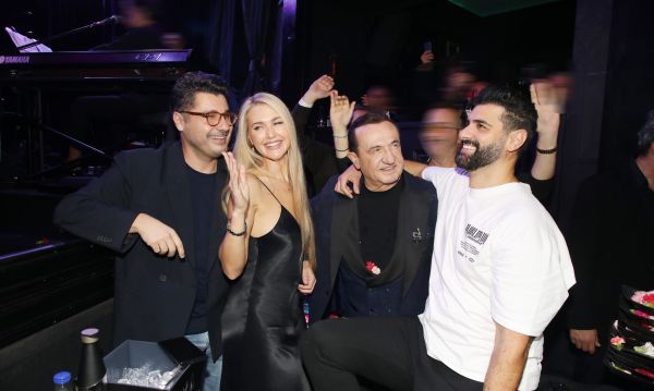 Στην ίδια παρέα διασκέδαζε και ο Λάμπρος Κωνσταντάρας, συνοδευόμενος από μια γοητευτική παρουσία, τραβώντας επίσης τα βλέμματα.