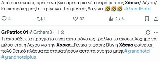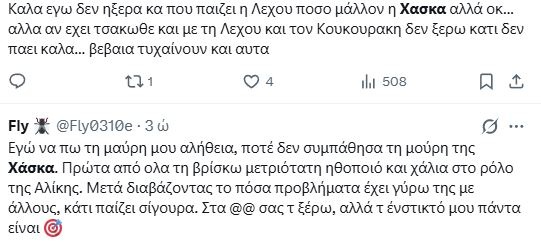 Στα trends του Χ κατάφερε να μπει η Καλλιόπη Χάσκα αλλά όχι για τον πρωταγωνιστικό της ρόλο στη σειρά Grand Hotel αλλά για το beef της με την Κατερίνα Λέχου.