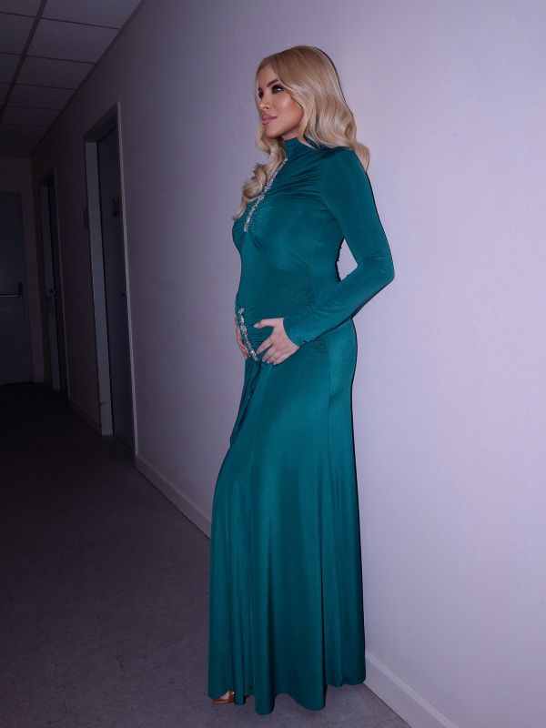 Σας στέλνω την αγάπη μου !», έγραψε και πόζαρε με ένα υπέροχο φόρεμα που τόνιζε τη φουσκωμένη κοιλίτσα της