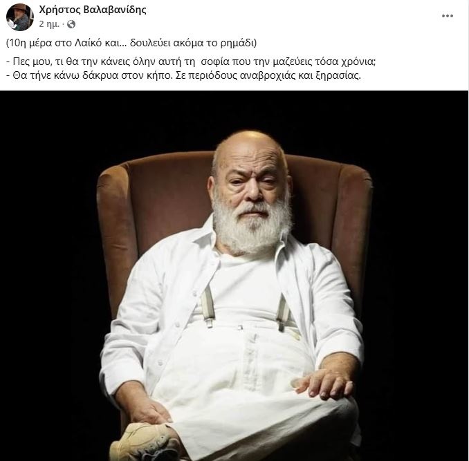 Στο νοσοκομείο νοσηλεύεται τις τελευταίες 12 ημέρες ο Χρήστος Βαλαβανίδης.