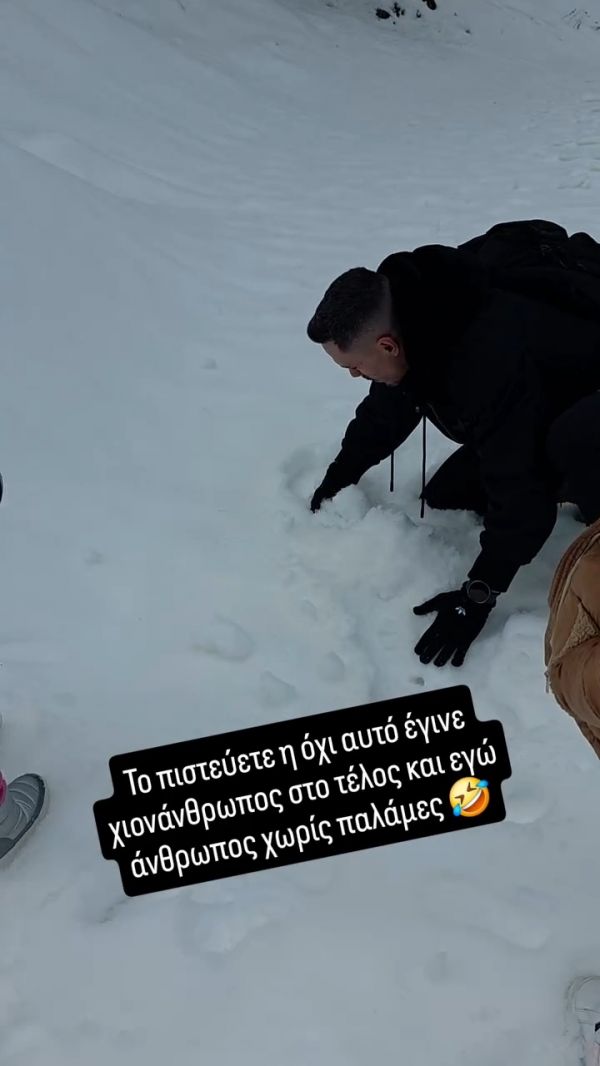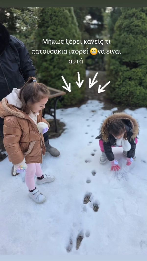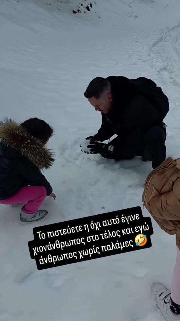 Το ζευγάρι εκμεταλλεύτηκε το Σαββατοκύριακο για μια σύντομη εξόρμηση στη φύση, με φόντο το χιονισμένο τοπίο, δίνοντας στα παιδιά την ευκαιρία να χαρούν το παιχνίδι στο χιόνι. Όπως φάνηκε και από τις αναρτήσεις τους στα social media, οι μικρές ήταν οι μεγάλες πρωταγωνίστριες, με γέλια, χιονοπόλεμο και φυσικά τη δημιουργία ενός χιονάνθρωπου.