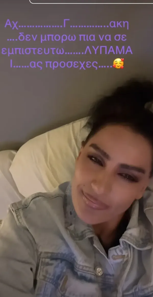 Σε άλλη ανάρτησή της έγραψε: «Δεν υπάρχει περίπτωση να γυρίσω πίσω Γ….ακη. Δεν νιώθω καμία επιθυμία να σε ξαναδώ. ΑΠΛΑ», ενώ ακολούθησαν και ακόμη πιο σκληρές φράσεις όπως: «Γ….ακη θα πάρεις σύντομα αυτό που αξίζεις δειλέ» και «Αχ Γ….ακη δεν μπορώ πια να σε εμπιστευτώ, ας πρόσεχες».