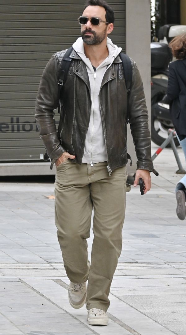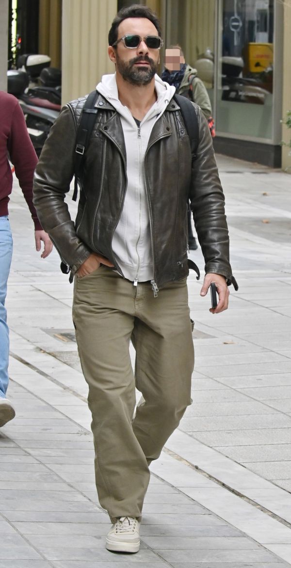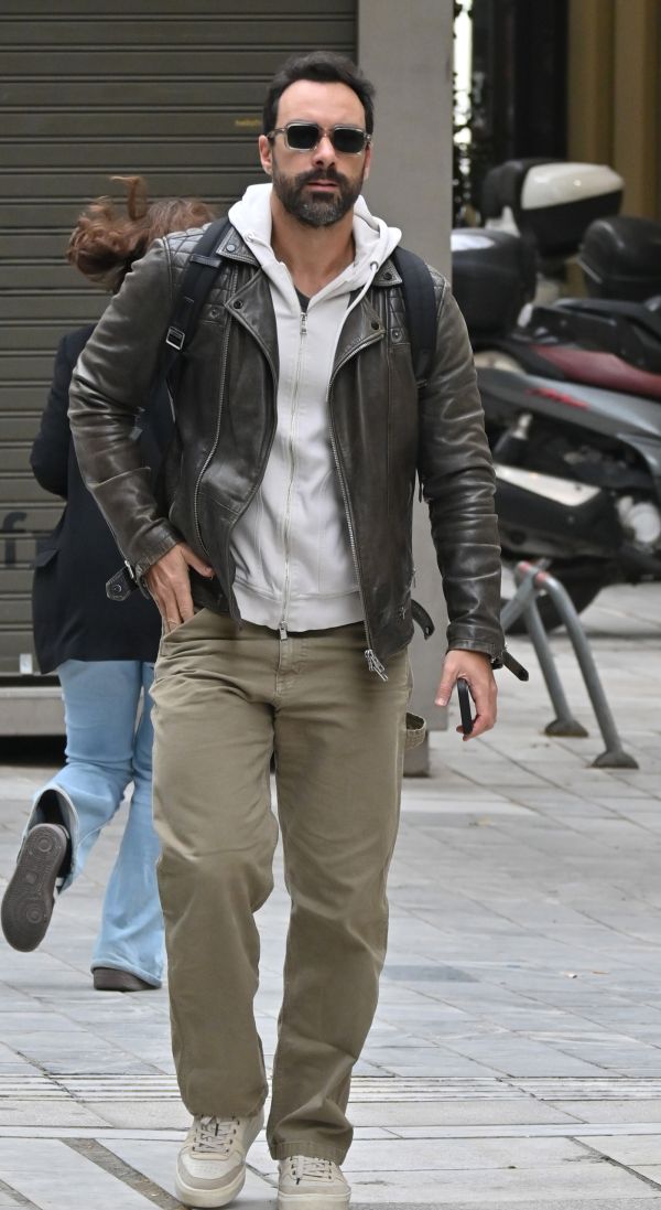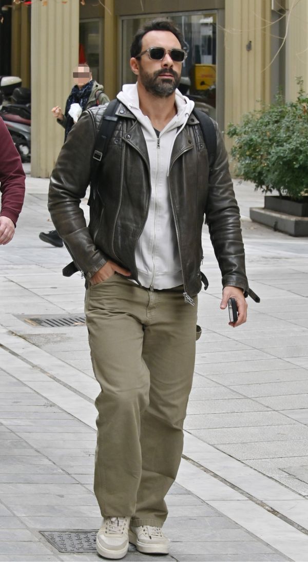 Στους δρόμους του κέντρου εντοπίστηκε επίσης και ο Σάκης Τανιμανίδης, ο οποίος απόλαυσε τη βόλτα του διατηρώντας το πάντα προσεγμένο στιλ του. Ο παρουσιαστής επέλεξε ένα πιο χαλαρό αλλά στιλάτο outfit, με φούτερ και δερμάτινο τζάκετ, αποδεικνύοντας ότι ακόμη και σε casual εμφανίσεις παραμένει ιδιαίτερα κομψός.