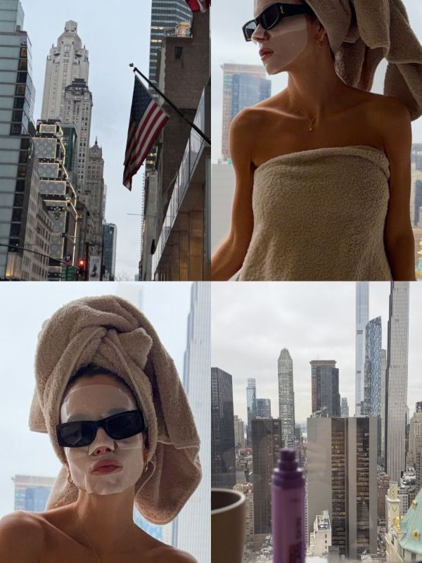 Όπως φαίνεται, η παραμονή της στη Νέα Υόρκη δεν περιορίζεται μόνο σε επαγγελματικές δραστηριότητες, αλλά περιλαμβάνει και στιγμές προσωπικής φροντίδας και ξεκούρασης, τις οποίες μοιράζεται με το κοινό της μέσα από μικρές, καθημερινές εικόνες.