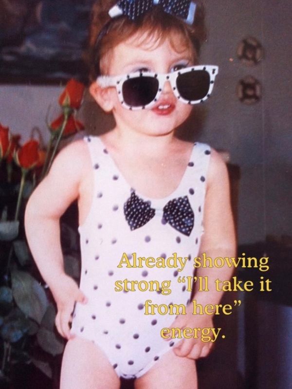 Στις λήψεις περιλαμβάνονται το χαριτωμένο κίτρινο αδιάβροχο, το girly πουά μαγιό αλλά και η αποκριάτικη στολή πριγκίπισσας, επιβεβαιώνοντας ότι η αγάπη για τη μόδα και το στιλ ήταν πάντα κομμάτι της ζωής της και συνδέεται άρρηκτα με την επαγγελματική της πορεία.