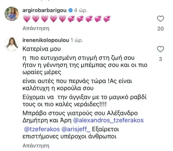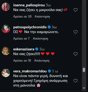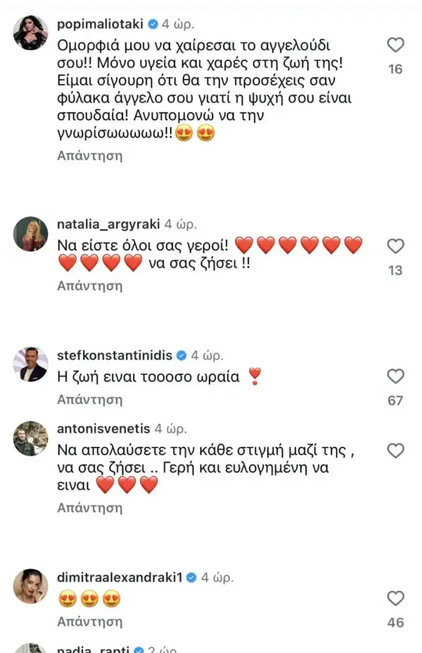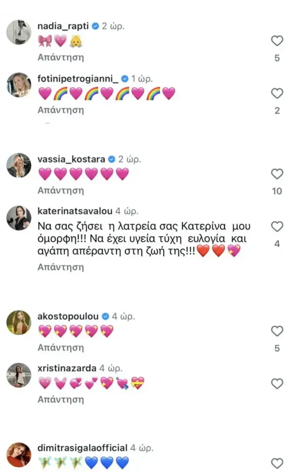 Δείτε παρακάτω όλους τους επώνυμους που ευχήθηκαν στην Κατερίνα Καινούργιου για τον ερχομό της μικρούλας της.