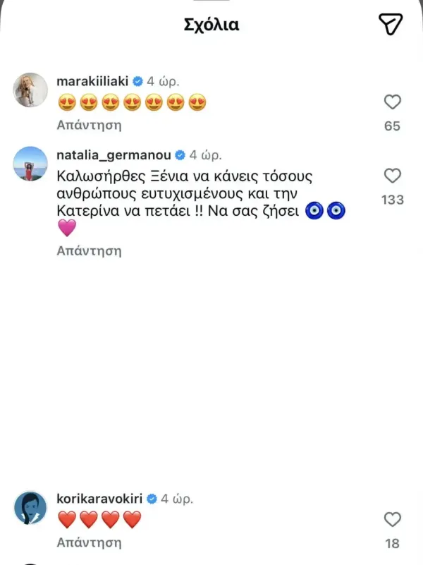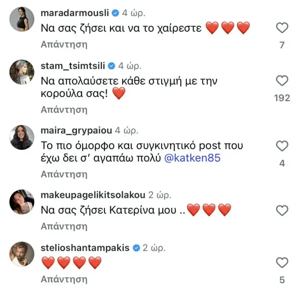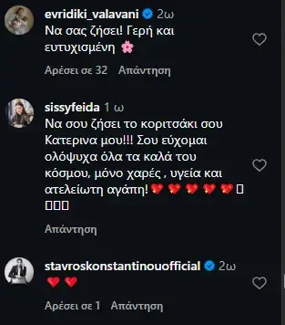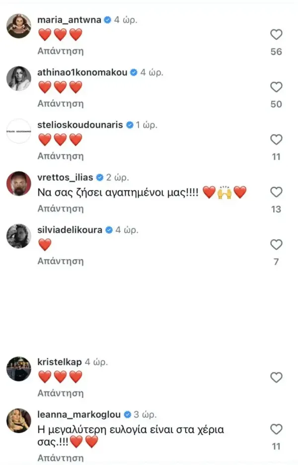 Όπως ήταν αναμενόμενο, η δημοσίευσή της συγκέντρωσε πλήθος σχολίων, με φίλους, συνεργάτες αλλά και διαδικτυακούς της φίλους να της στέλνουν ευχές και μηνύματα αγάπης.