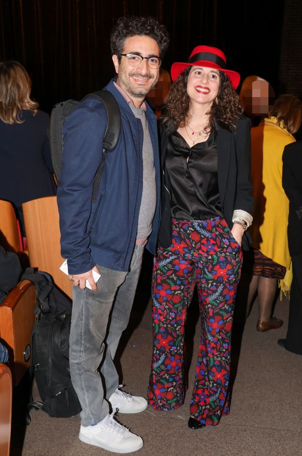 Τα βλέμματα, ωστόσο, τράβηξε η Σάρα Τοσκάνο, η οποία επέλεξε ένα εντυπωσιακό σύνολο. Σατέν μαύρο πουκάμισο, μαύρο blazer, παντελόνι με ιδιαίτερο μοτίβο και ένα κόκκινο καπέλο που έδωσε έντονη, στιλιστική υπογραφή στη βραδιά.