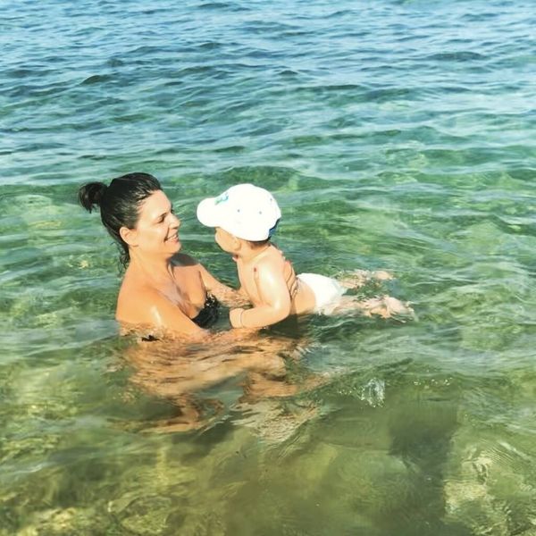 Η ηθοποιός κολυμπά με τον γιο της.
