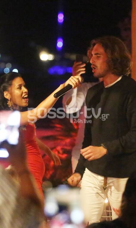 Μάλιστα ο Στέφανος Τσιτσιπάς περνούσε τόσο καλά που έφτασε στο σημείο να σηκωθεί και να χορέψει αλλά και να τραγουδήσει από μικροφώνου με την Κουβανή τραγουδίστρια.
