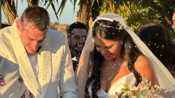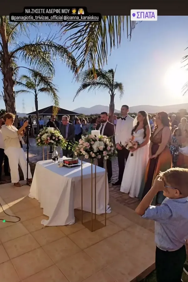 Μετά τον γάμο ακολούθησε δεξίωση στον χώρο έχοντας στο πλευρό τους τις οικογένειές τους και τους φίλους τους.