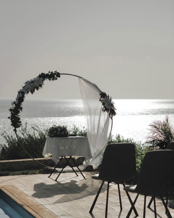 Το ζευγάρι παντρεύτηκε δίπλα στη θάλασσα σε ένα υπέροχο σκηνικό.