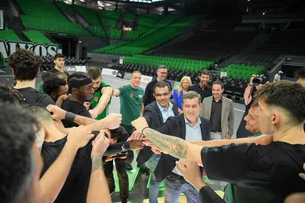 Οι παίκτες και το τεχνικό επιτελείο του Παναθηναϊκού AKTOR με μέλη από το top management του ΟΠΑΠ