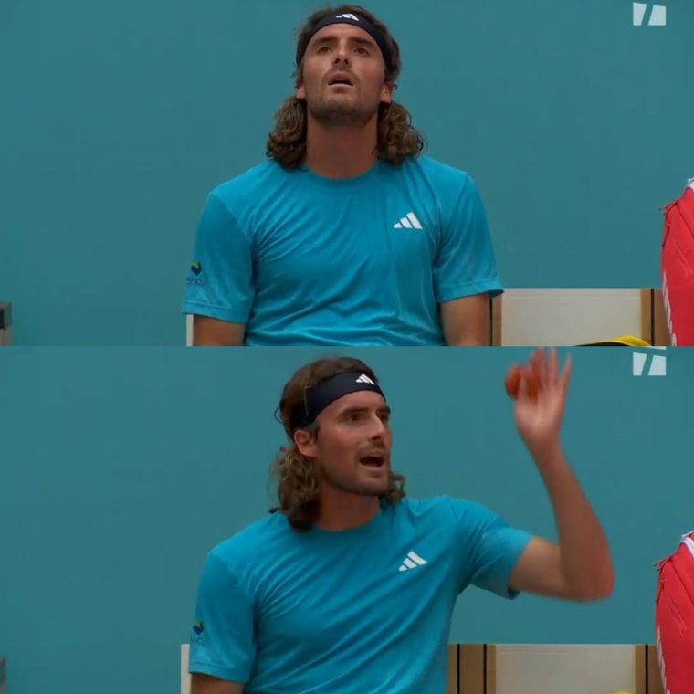 Ο Στέφανος Τσιτσιπάς άρχισε να φωνάζει με έντονο ύφος προς το box της ομάδας του. Οι κάμερες και τα μικρόφωνα κατέγραψαν τον πρωταθλητή να ξεστομίζει ύβρεις όπως: «Μαλ@@, άντε γαμη@@. Τράβα γαμη@@».